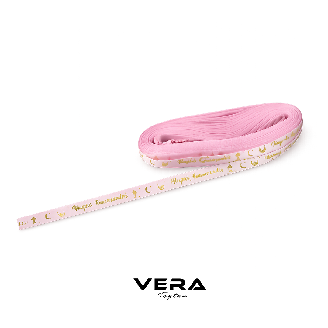 10'lu Paket 1cm 10 mt Altın Yaldız Hayırlı Ramazanlar yazılı Pembe Kurdela