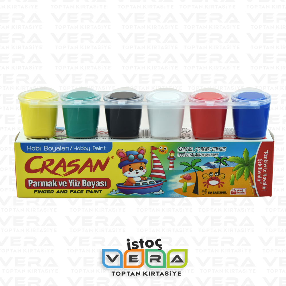 6 renk 25 ml parmak ve yüz boyası seti, kreş, anaokulu, ilkokul ve etkinlik organizasyonları için güvenle kullanılabilecek, EN71 sertifikalı ve non-toxic formüle sahiptir. Kolay temizlenir, su bazlı yapısı sayesinde çocuk sağlığına uygundur. VERA Toptan Kırtasiye olarak İstoç’taki stoklarımızdan Türkiye’nin tüm bölgelerine hızlı ve güvenli sevkiyat sağlıyoruz. 15.000? üzeri ücretsiz kargo fırsatı ile toplu alımlarınızda maliyet avantajı sunuyoruz.
