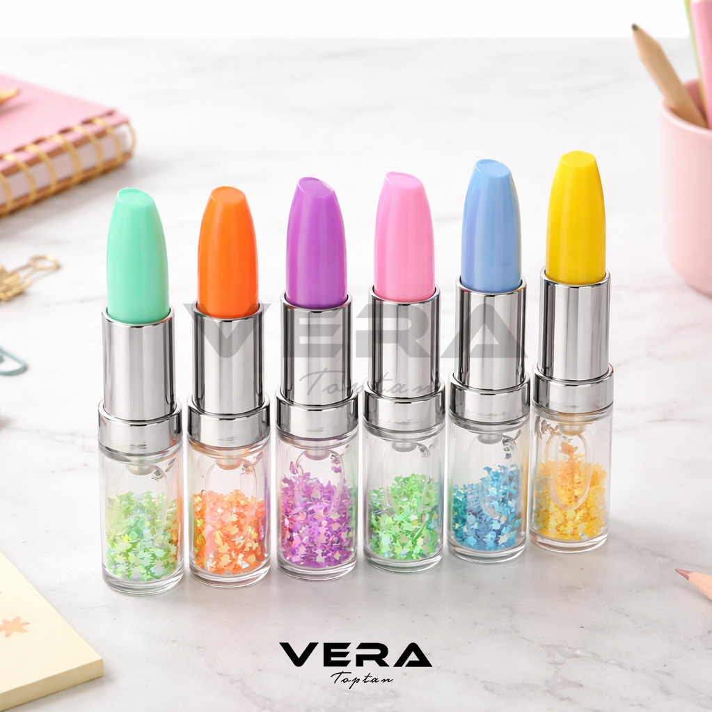 6 Renk Sulu Şişe Ruj Fosforlu Kalem