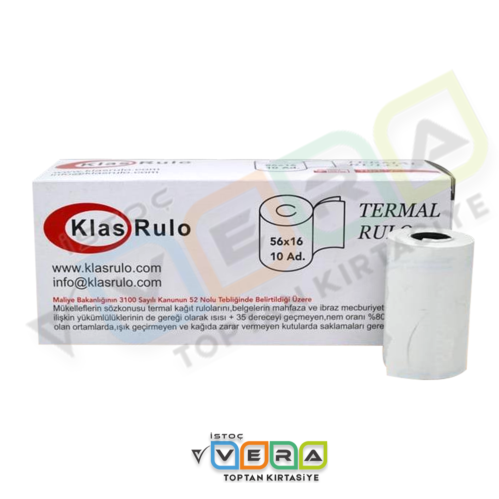 Klas Marka 56x16 Termal Rulo, barkod yazıcılar ve POS makinelerinde sorunsuz kullanım için tasarlanmış, yüksek kaliteli termal kağıttır.