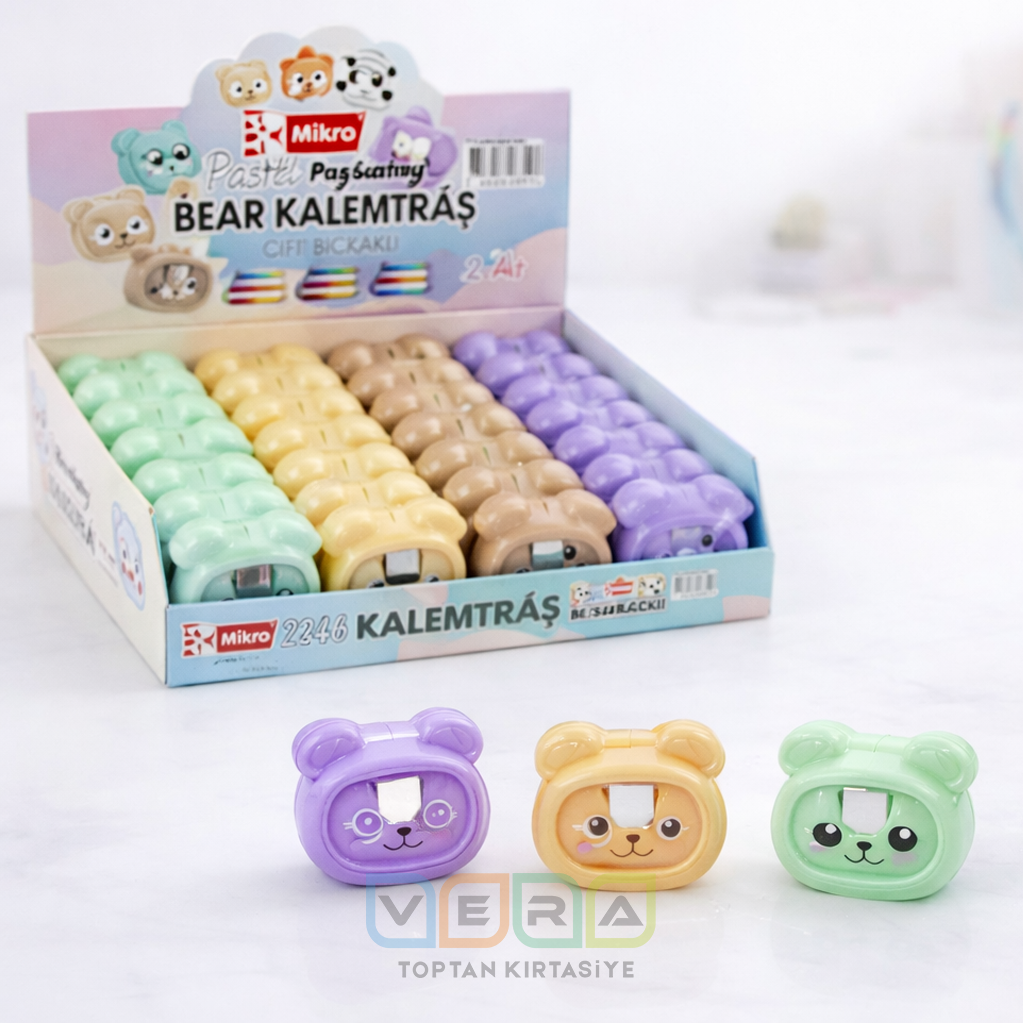 Mikro MK-8152 Çift Bıçaklı Happy Friends Kalemtraş 24 lü stant