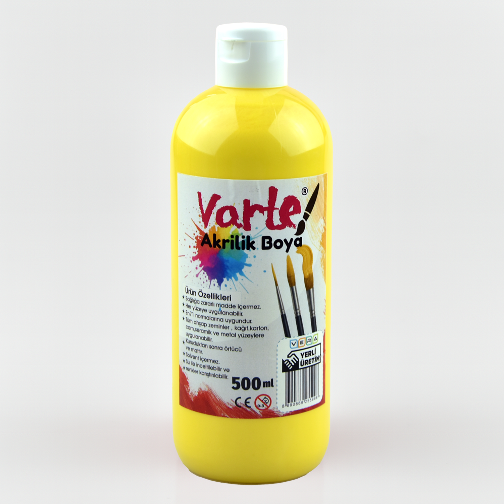 Ürün Açıklaması: Toptan Varte 500ml sarı akrilik boya, canlı ve örtücü formülüyle okul, hobi ve sanatsal kullanım için idealdir. Sağlığa zararlı madde içermez. Kağıt, karton, ahşap ve cam gibi yüzeylerde mükemmel sonuç verir. İstoç'taki VERA TOPTAN KIRTASİYE stoklarından hızlıca tedarik edilebilir.